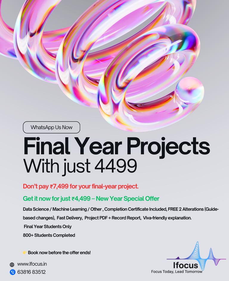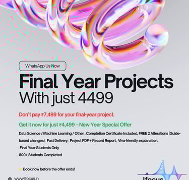 At iFocus, we specialize in providing tailored academic projects for college students, focusing on the latest trends in technology. Our platform ensures a seamless experience from browsing to project completion.